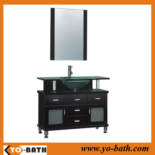 Material: Tempered glass sink, solid wood cabinet, mirror with frame.